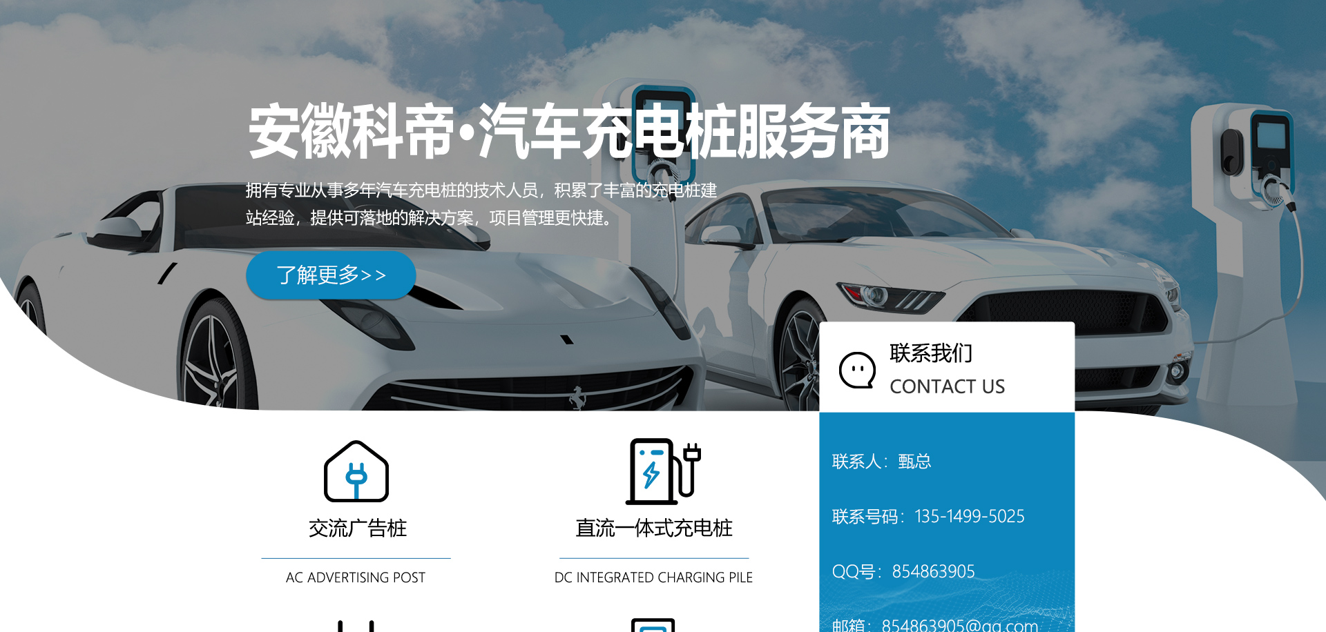 關(guān)于我們安徽科帝新能源科技有限公司坐落于安徽省會-合肥,是一家研發(fā)、生產(chǎn)智能充電樁設(shè)備,汽車充電站后臺監(jiān)控管理系統(tǒng)和生產(chǎn)高壓開關(guān)設(shè)備的企業(yè).由專門的研發(fā)團隊、管理團隊按照現(xiàn)代化企業(yè)制度規(guī)范設(shè)立的有限責(zé)任公司。致力于為能源智能、安全的應(yīng)用和節(jié)能減排提供整體的技術(shù)與產(chǎn)品解決方案。科帝集研發(fā)、設(shè)計、生產(chǎn)、銷售以及服務(wù)于一體,在電動汽車充電方案,充電設(shè)施建設(shè)和城市配電方面擁有廣泛的技術(shù)研究及經(jīng)驗積累,為客戶提供安全、智能的充電設(shè)備及充電運營站建設(shè)一體化解決方案。并堅持以人為本、質(zhì)量為先、顧客至上、不斷創(chuàng)新”的企業(yè)理念,為能源行業(yè)的發(fā)展、節(jié)能減排做出重大的貢獻。公司擁有豐富的產(chǎn)品種類,目前科帝已研發(fā)生產(chǎn)了三十多種產(chǎn)品,充電設(shè)備有直流一體式充電樁、直流分體式充電樁、直流廣告樁、交流廣告樁、廣告一體樁、壁掛交直流樁;等多種充電設(shè)備;每一款產(chǎn)品都是精心打造,力求為客戶提供優(yōu)越的用戶體驗。展望未來科帝將通過持續(xù)的自...